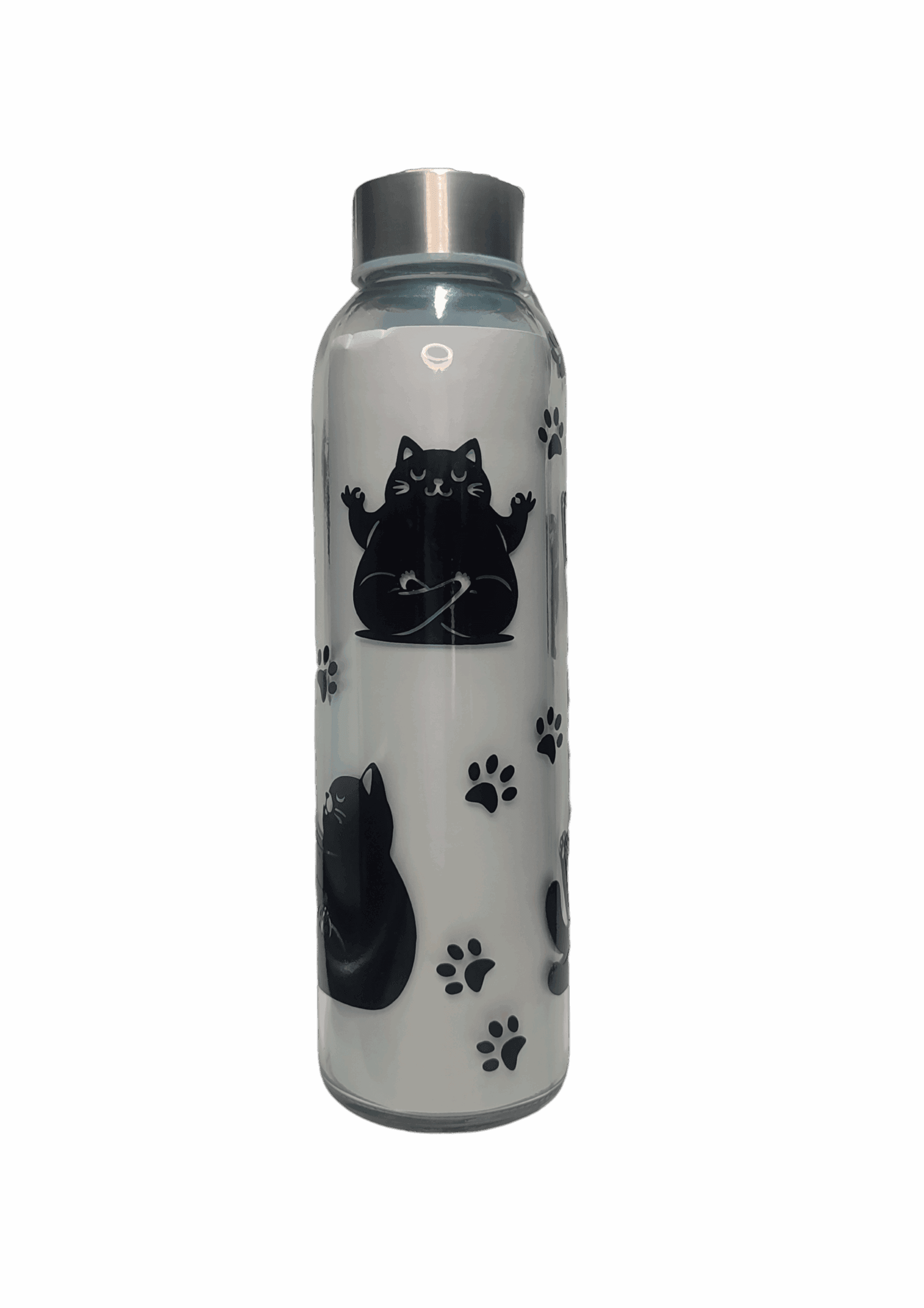 Ideal para regalar o para ti, esta botella de cristal con diseño de gatos haciendo yoga es perfecta para los amantes del yoga y los felinos.