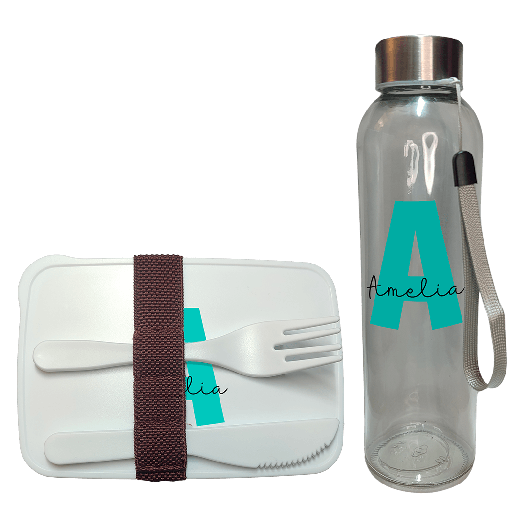- Fiambrera con Cubiertos (Personalizable): Material resistente: Libre de BPA. Incluye cubiertos: Tenedor y cuchillo integrados (¡nunca los olvidarás!). Personalización: Elige tu nombre e inicial en varios colores de vinilo. Diseño moderno: Varios colores disponibles.
